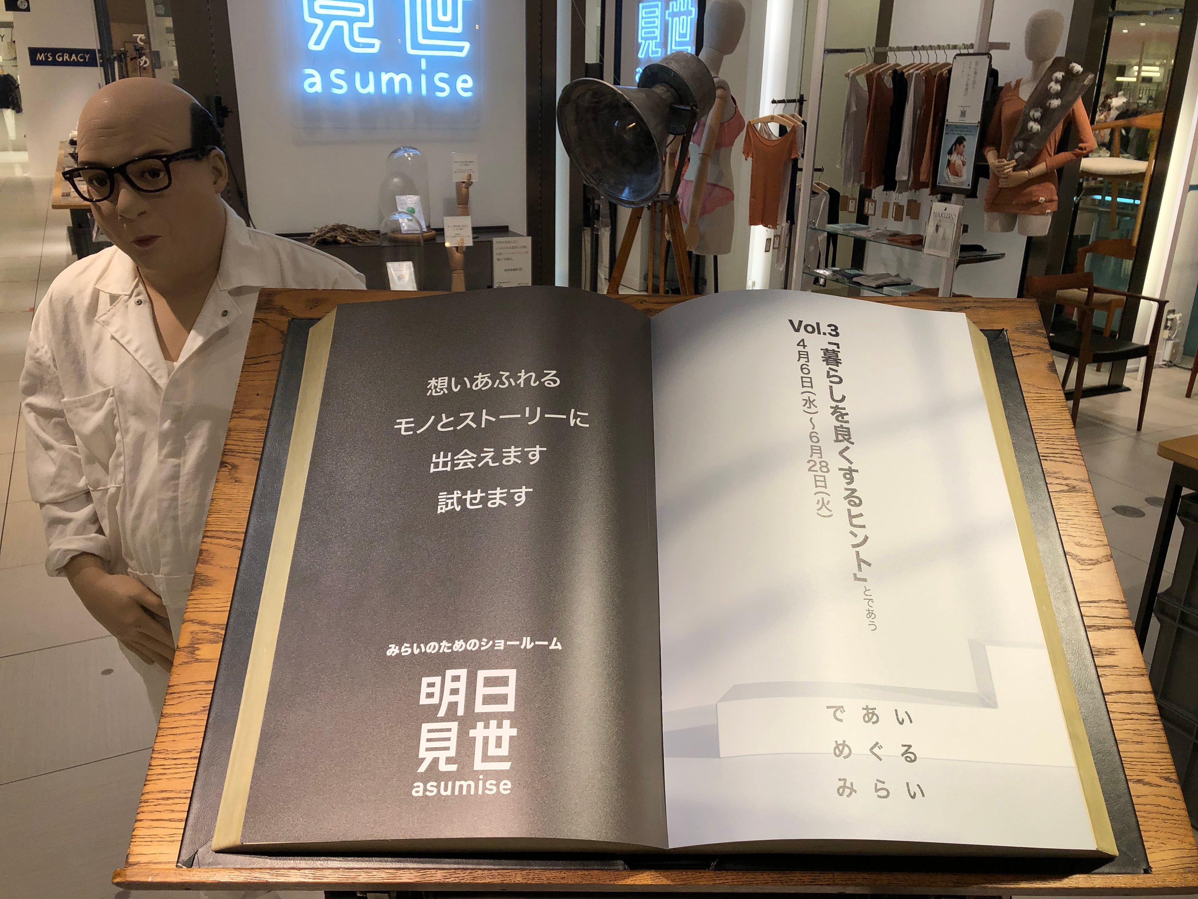 明日見世(asumise)とは、大丸松坂屋百貨店初のショールーミングスペースです。第3弾のテーマは「暮らしを良くするヒントとであう」。合計19ブランドが集結しています。