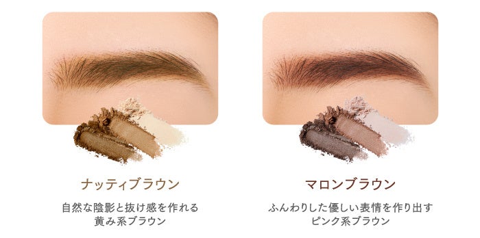 ふんわり密着し、ノーズシャドウや眉下のハイライトにも使えて立体感のある目元を演出するアイブロウパウダー。肌へ密着する油剤コートパウダーと、毛に絡む異形パウダーの2種のパウダー配合で高密着と美発色を叶えます。