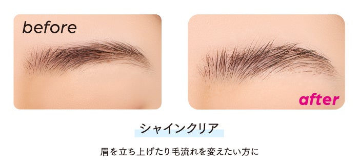 3つの被膜形成成分※4が毛を立ち上げて眉を強調するトリプルホールド設計。ラメ入りの透明ジェルが眉に立体感を与えます。角度がついた極小ブラシが肌へ当てやすく、毛をしっかり絡めるので簡単に立ち上げができます。
