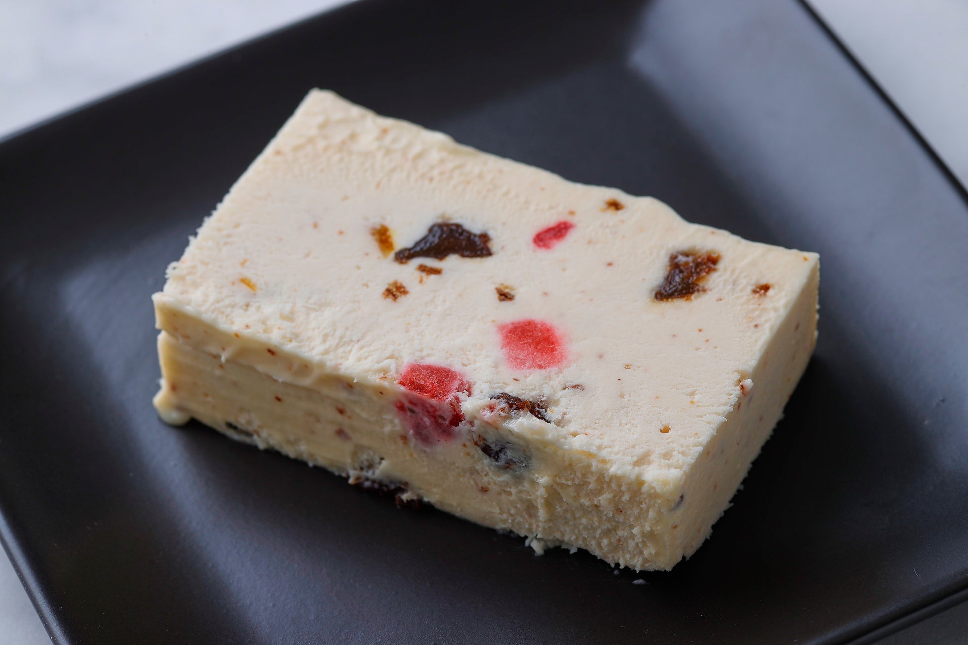 製品特長:乳由来の素材を上手に使うことでチーズ風味を再現。練り込まれたアーモンドが食感にアクセントをもたらし、満足度もアップ。ほのかに香るラムレーズンや、オレンジ、ストロベリーのさわやかな酸味がハーモニーを奏でます。