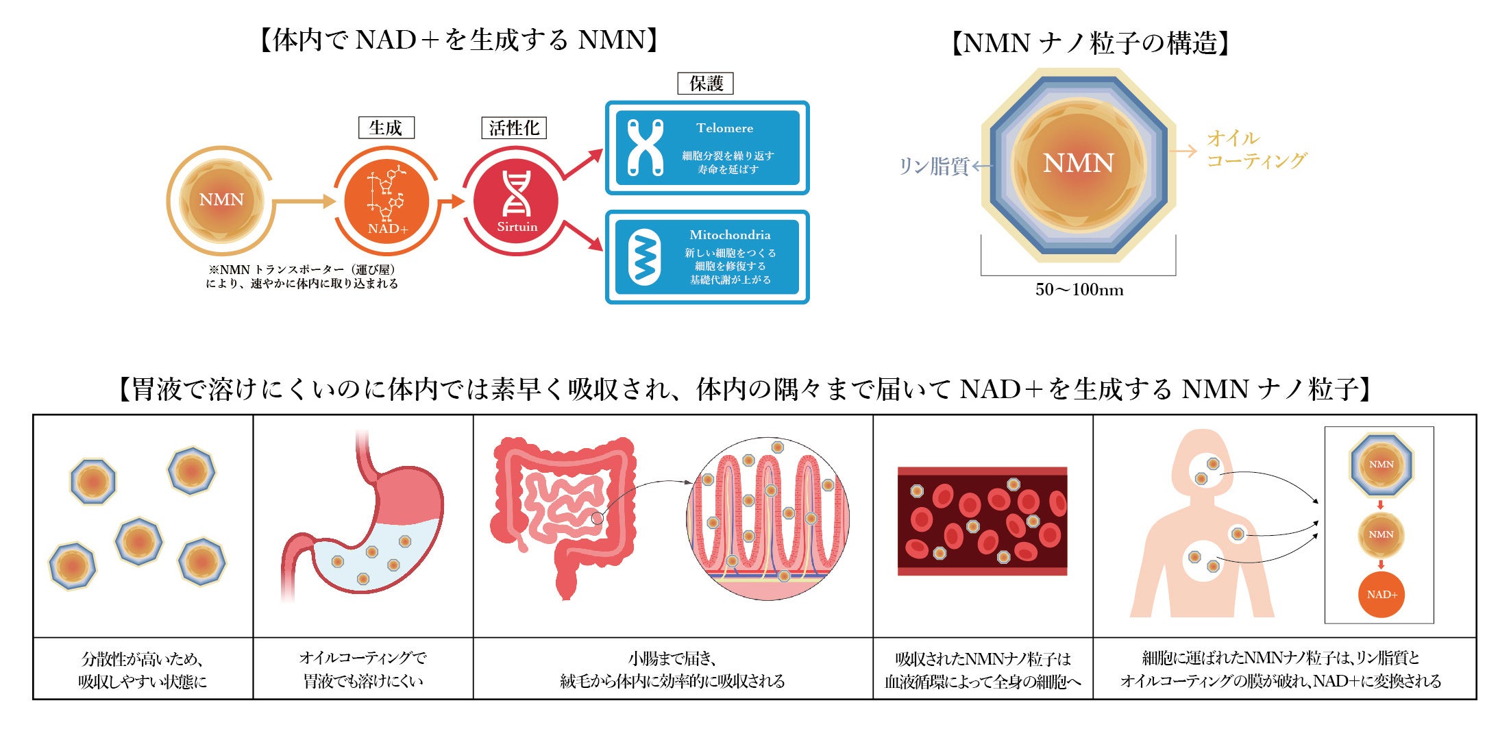 ■特許出願中「NMNナノ粒⼦化技術」に成功