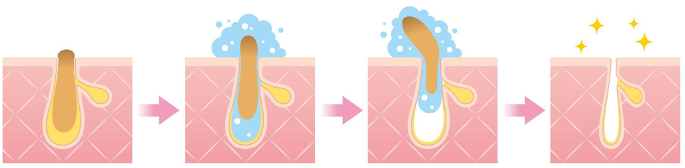 タンパク質と皮脂によって形成される“角栓”を分解する機能をもつ酵素の力で、しつこい角栓を根こそぎ除去します。