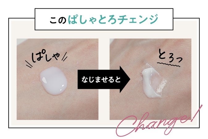 化粧水からクリームパックに変化するテクスチャーとなっており、