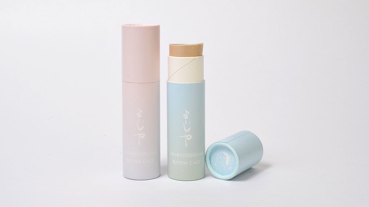 「あぶらとり紙BATON」は、筒形のパッケージに同じくあぶらとり紙が1枚ずつ入っています。