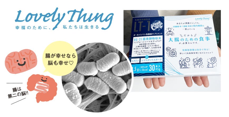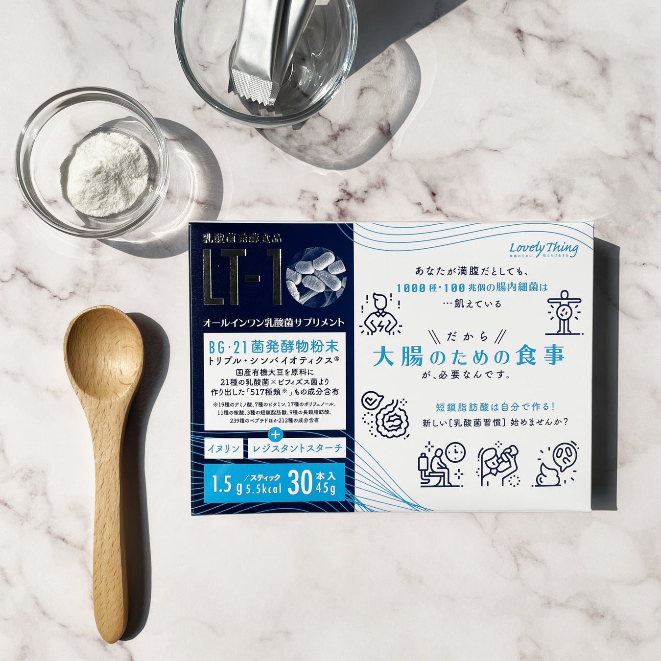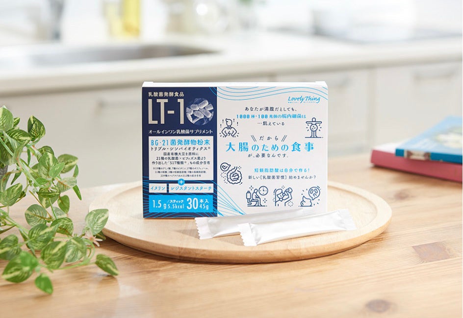腸は第二の脳と言われていて、大腸が本来の働きをすれば私たちの心も健やかになる可能性があると言われています。自分自身の力で毎日をイキイキさせたいと願う人々を応援するために新しい乳酸菌習慣を届ける(Lovelything)。進化した乳酸菌ともいえる乳酸菌生産物質のオールインワンサプリメント「乳酸菌発酵食品 LT-1」就寝前に一日一包を目安に飲むのがおすすめです。毎日がんばるパパ、ママ、お子さま!大切なおじいちゃん、おばあちゃんと一緒におやすみ前の飲むだけ腸グッドナイト新習慣をはじめてみませんか?