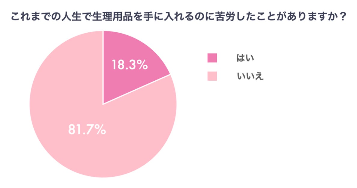 ベビーカレンダーが運営するサービスを利用したことがある22歳~45歳の女性1123名の調査において、「これまでの人生で生理用品を手に入れるのに苦労したことがある」と回答した人は約5人に1人にあたる18.3%にのぼりました。