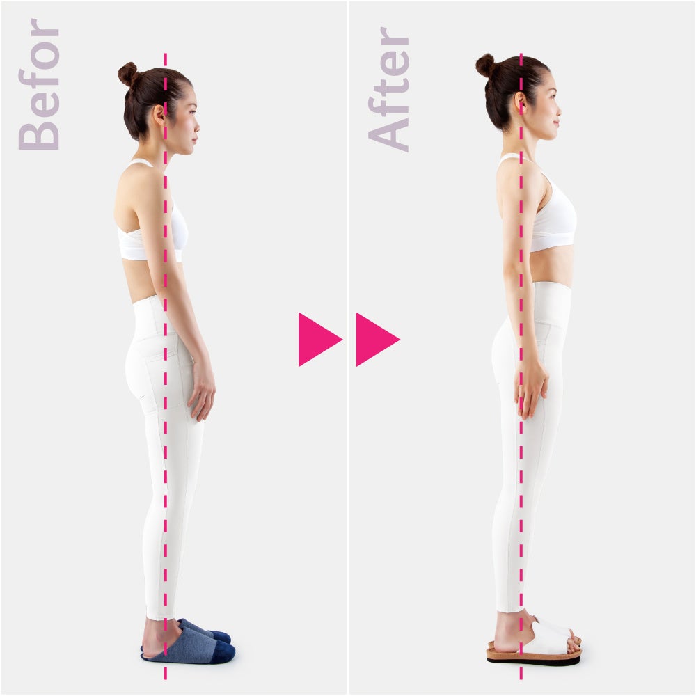 立ちヨガの基本ポーズ山のポーズは非常にシンプルな立ち方ですが正しい姿勢をキープする必要があります。傾斜でカラダの重心が自然に後ろに意識させることで履くだけで姿勢の良い印象になります。