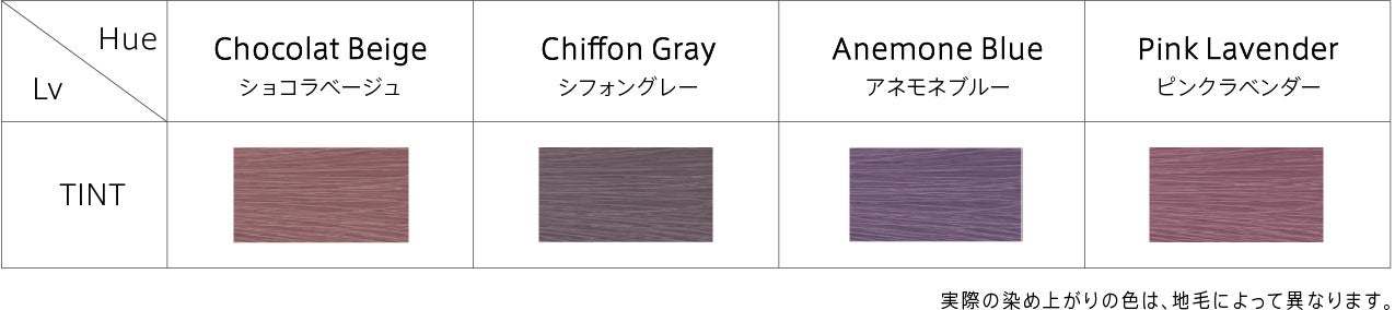 ハイトーンの黄みをコントロールする上で欠かせないシアーラベンダーを軸に、やわらかさを表現するシアーピンク・シアーグレーを掛け合わせた新たなベースカラー。補色とやわらかな色みを幾重にも重ね合せることで、力強くも曇りのないシアーな発色を実現します。