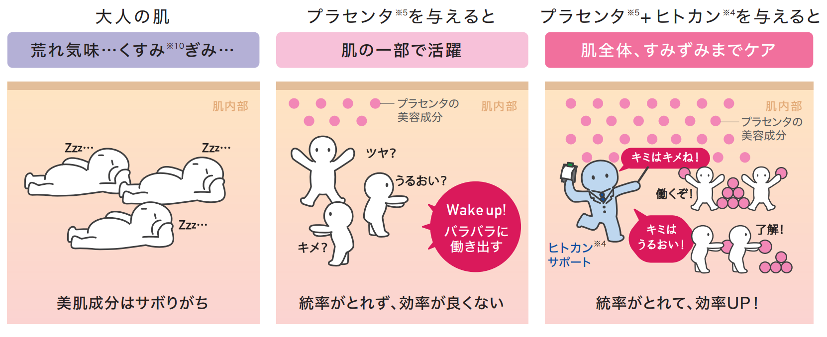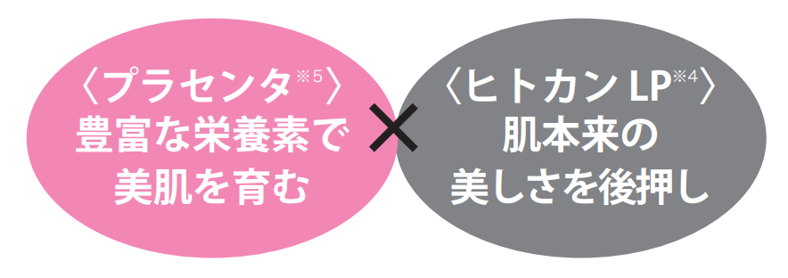 ■ 「ディープ プラセンタエキス(※5)」を、「ヒト幹細胞培養エキス(※4)」が、パワフルにバックアップ