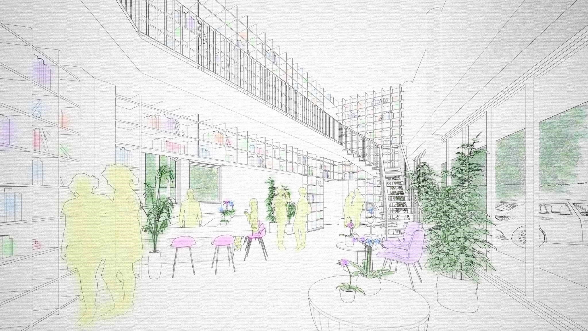 また、同施設はカフェのほか、最大6,000冊収容可能な本棚も併設。「ながくて大学」と題した、本を通した学びや交流を楽しめる催しを開くなど、地域の方々の学習活動を支援いたします。さらに、NPOふくりびがこれまで行ってきた事業である美容室、アピアランスサポートセンター*2も併設するなど、日本初の福祉複合型の施設*3となります。