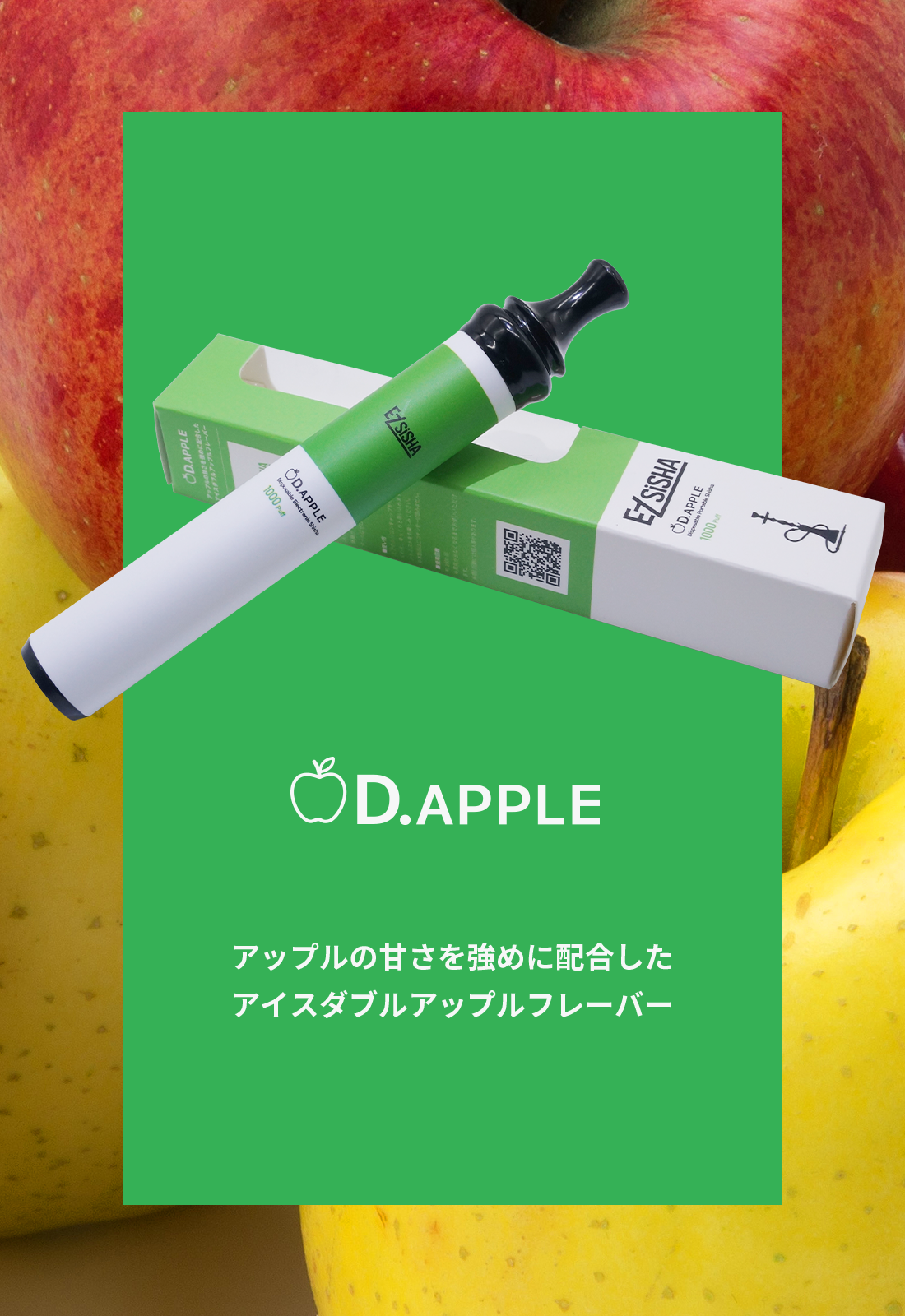濃縮されたアップルの瑞々しい甘さ×アイスホースの冷却感を楽しめるダブルアップルフレーバー。