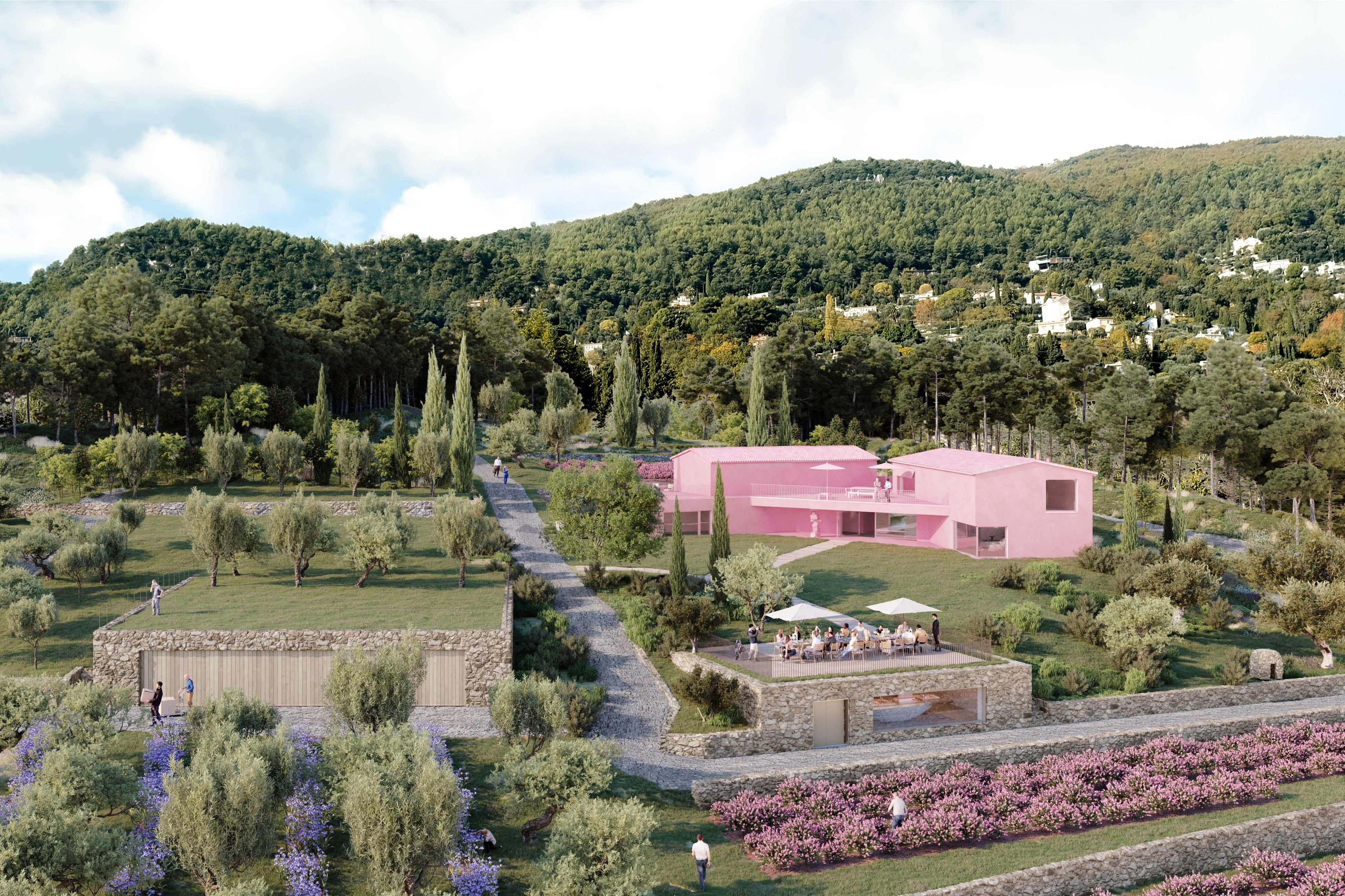 ランコムはその言葉と違わず、この穏やかで持続可能なプロジェクトを果断に実行していきます。プロジェクトで設計を手掛けたのはNeMエージェンシーに所属する2人の建築家、リュシー・ニネとティボー・マーカです。パッシブバイオクライマティックデザインがベースになっています。以前からあったドライストーンウォール*¹は残し、伝統の工法で修復しました。新しい農業施設は自然の景観になじみ、ストーンウォールの外観とも調和する作りです。新しいローズハウスは従来のプロバンス風住居の大きさと建築学的特徴を踏襲しながら改修しました。グラース地域の遺産や技術を忠実に取り入れた色や素材を使いながら現代的外観に仕上げています。主たる建物の改築については被覆材や屋根、木工品など外装に用いる材料はすべてピンクで統一し、色の数を抑えることによって全体がまとまった印象を与えます。ピンクはこの土地の色の一つです。この地域に生育する花や植物に自然に存在し、グラースの住宅の正面にもしばしば用いられます。そしてランコムのイメージと共鳴する色でもあります。