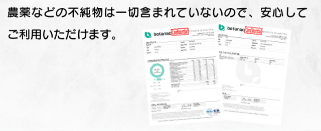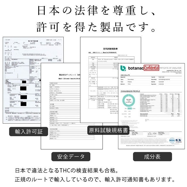 弊社で使用しておりますCBDは、国の厳しい基準をクリアした純度の高いCBDのみを使用しております。