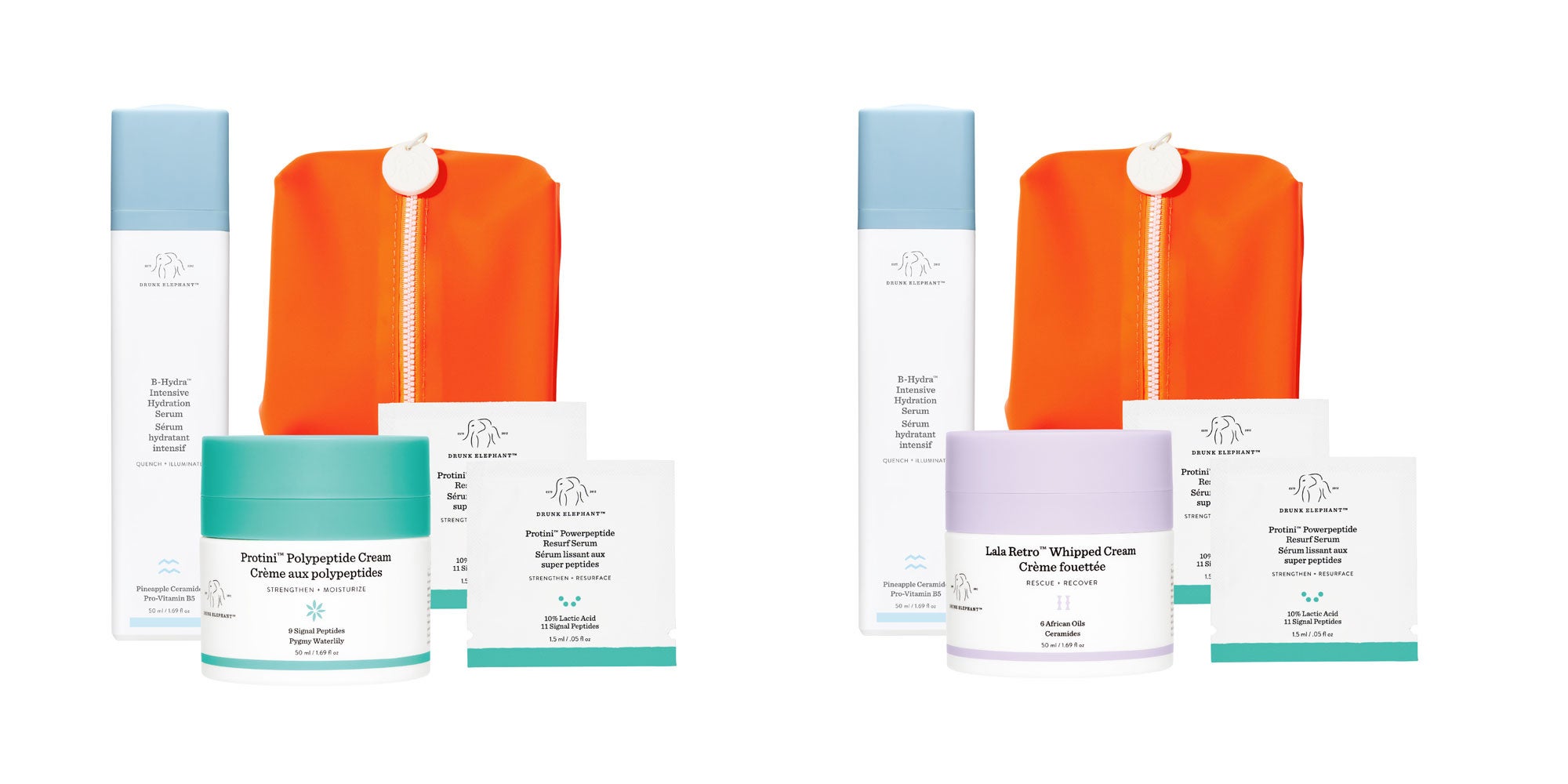 人気クリームと保湿液を現品で、さらに朝晩使える万能セラムをサンプルで試せる特別なセットが登場。なりたい肌に合わせて、クリームを選びドランク エレファントの”成分引き算主義”を体験して。