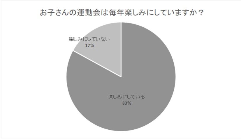 綺和美では、「お子さんの運動会を毎年楽しみにしていますか?」というアンケートを行いました。すると、「楽しみにしている」と答えた人は83%と多くの人が答えたのです。