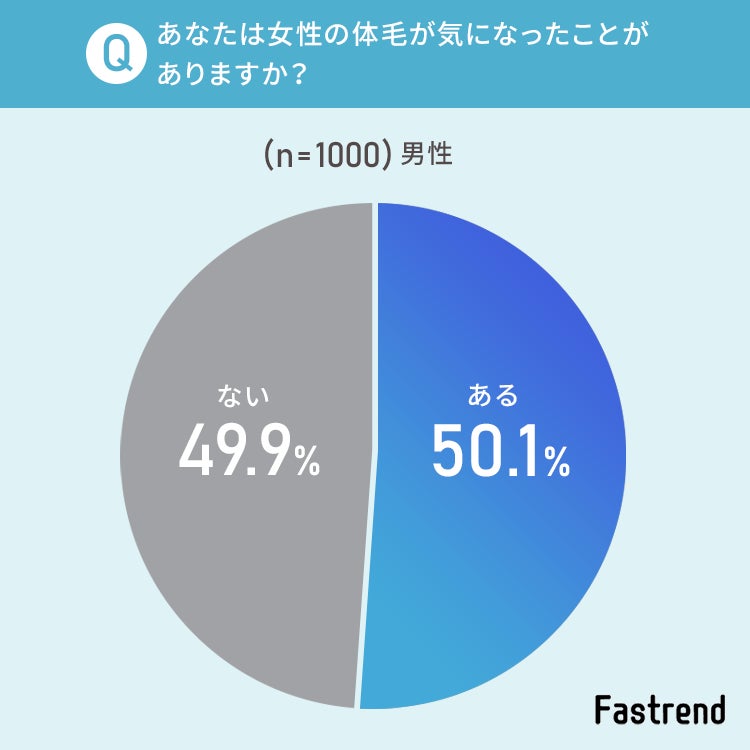 半数の男性は女性のムダ毛が気になった経験があるようです。