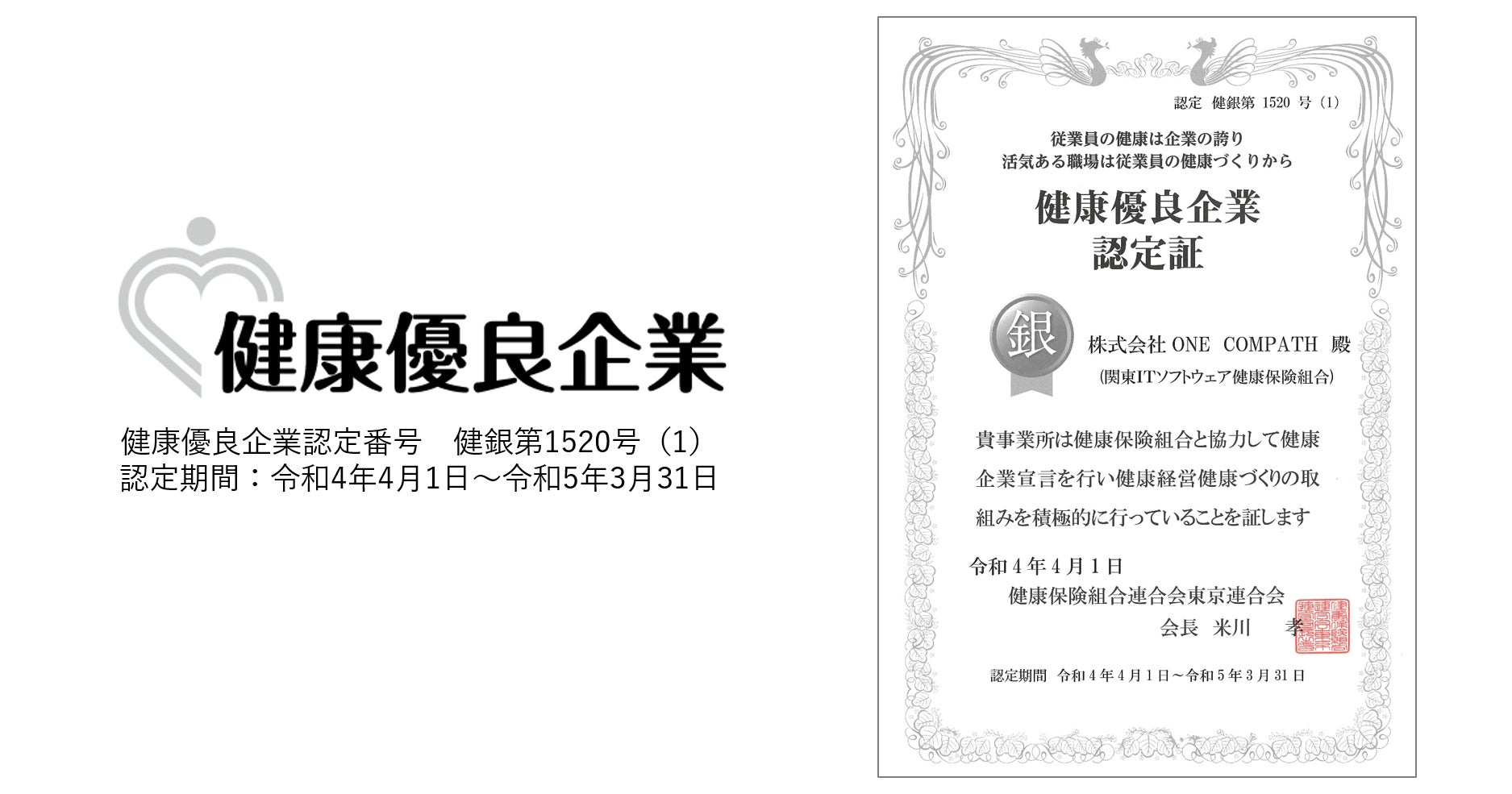 ■ONE COMPATH、健康優良企業「銀の認定」を取得しました(2021年3月15日)