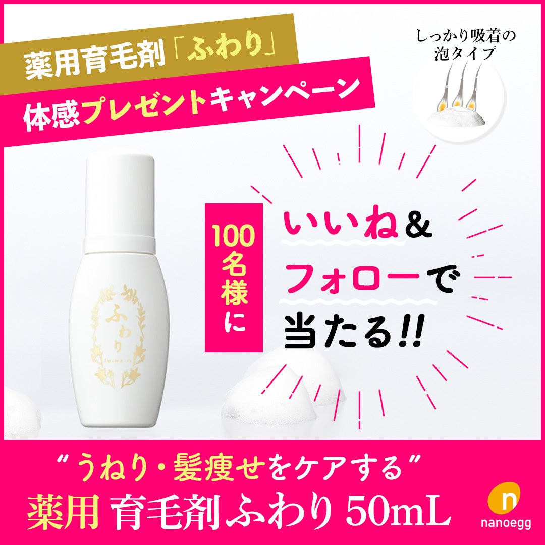株式会社ナノエッグ(本社:東京都港区、代表取締役 山口葉子)は、2022年4月25日(月)より、「薬用育毛剤ふわり(医薬部外品)」の体感プレゼントキャンペーンを、<ナノエッグ公式インスタグラム>と<ナノエッグ公式ツイッター>にて開催いたします。