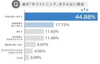 コンプレックスで最も多かった歯の黄ばみや着色を「早く」「根本的に」解決できる方法は「ホワイトニング」ですが、実際に「やったことがある」と回答したのはわずか6.5%にとどまった一方で、90.8%の方が「やってみたい」と回答しました。実際にやっていない理由も伺うと、1位は「料金が高い・高そう」、2位は「施術時間が長い・長そう」、3位は「痛そう」といったネガティブなイメージを持っている方が多いことが分かりました。