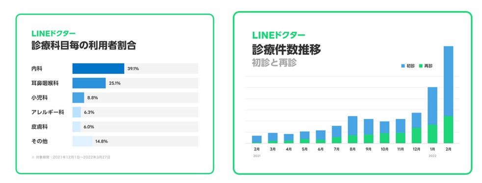 LINE株式会社(本社:東京都新宿区、代表取締役社長:出澤 剛)と、エムスリー株式会社(本社:東京都港区、代表取締役:谷村 格)の共同出資により設立した合弁会社であるLINEヘルスケア株式会社(本社:東京都新宿区、代表取締役社長:舛田 淳)は、オンライン診療サービス「LINEドクター」における2022年2月の月間診療件数が、2020年12月のサービス開始以降過去最多を更新、前年比20倍以上に増加したことをお知らせします。