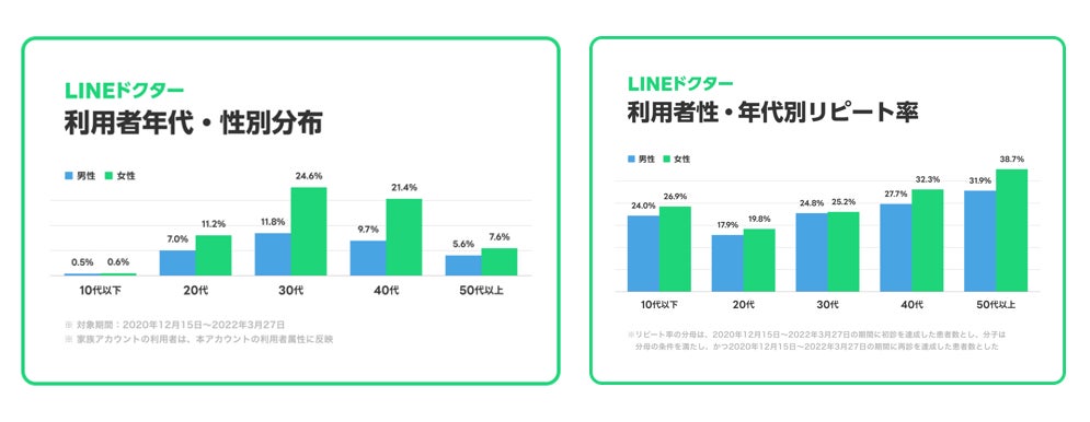 図1:LINEドクター利用者年代・性別分布・リピート率