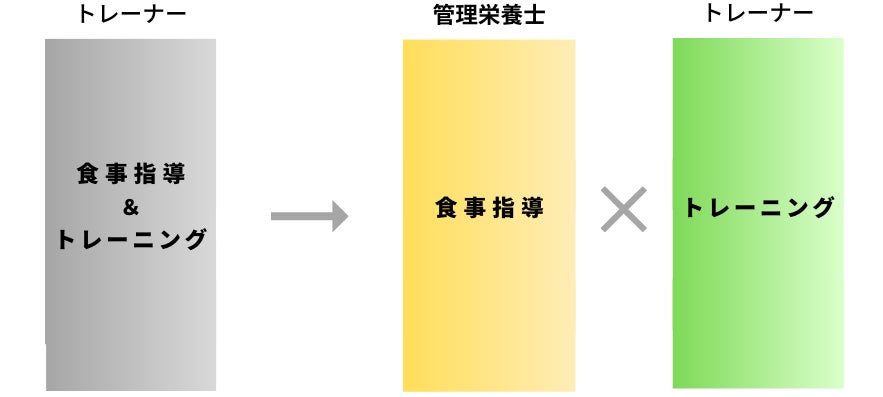 経営目線でみると、管理栄養士が行う食事制限をしない指導法は、大手パーソナルトレーニングジムとは違う指導法なので、差別化になっています。小規模パーソナルトレーニングジムでも管理栄養士の個別指導を取り入れているジムは少ないので強みになっていると思います。