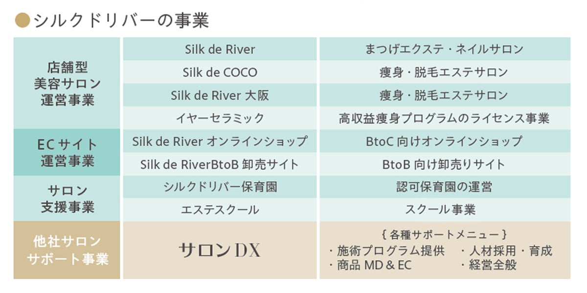 事業内容:ECサイト「シルクドリバー」の企画、運営。サロンDXの提供