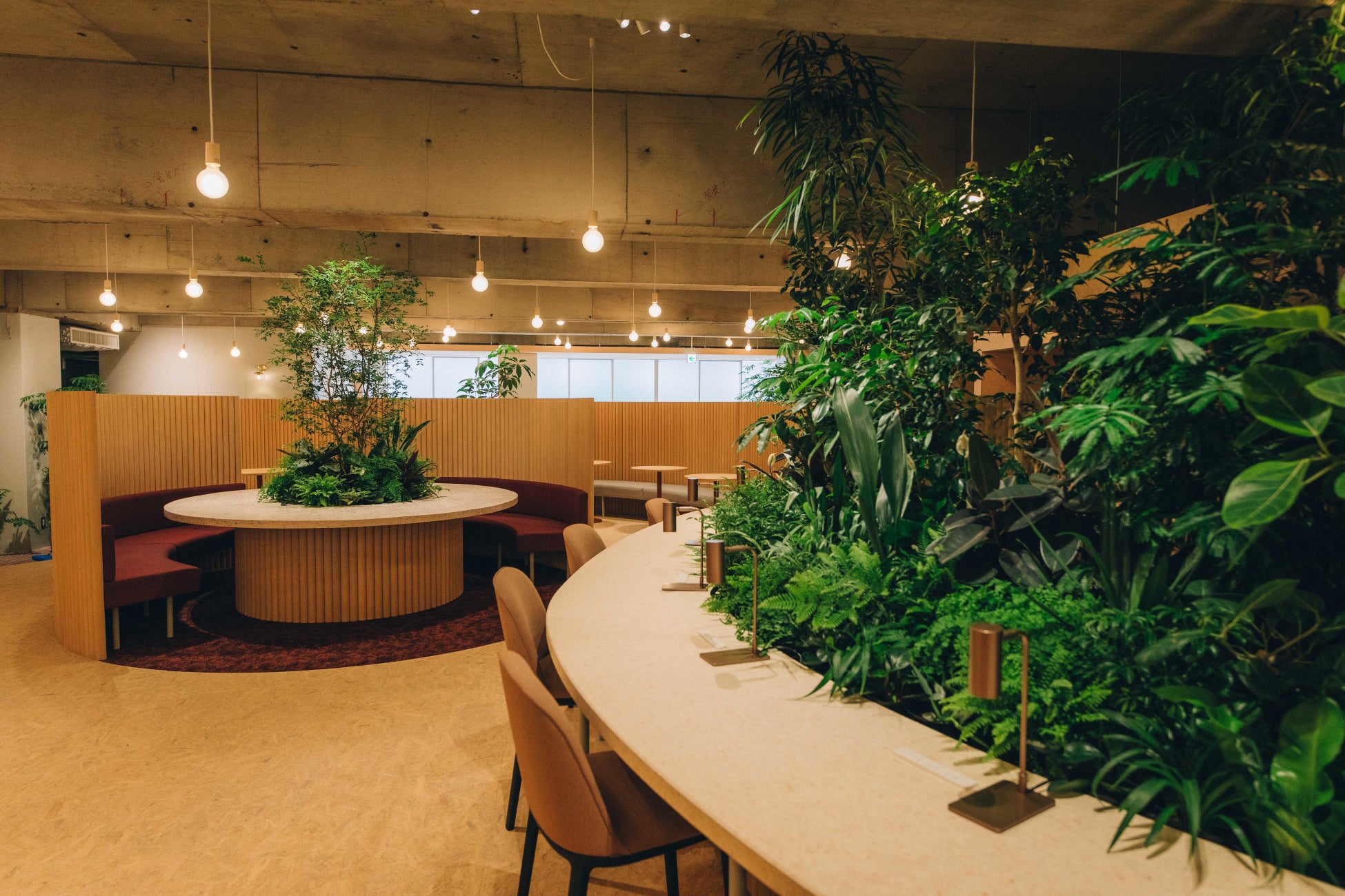 2フロアに広がる緑あふれるワークラウンジ「Kant. WORK LOUNGE」は、オールフリーアドレスの2Fと、1名から利用できる固定席・固定ブースのプランを備えた3Fを、ワーク&ライフに合わせて柔軟に選ぶこと可能です。