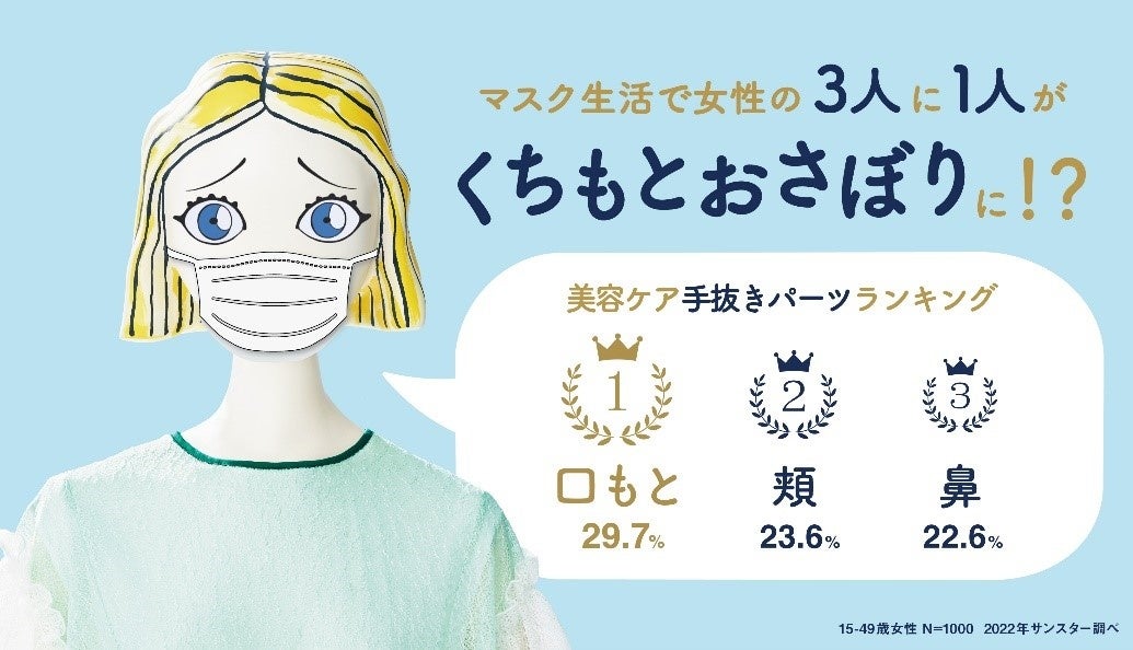 マスク着用でも見えやすいパーツはケアする一方で、約3人に1人が口もとのケアを怠けていると判明。