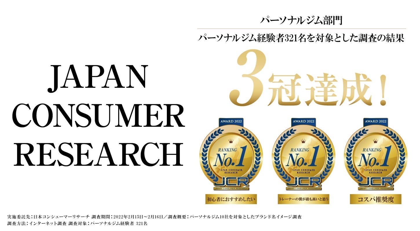 今回『THE PERSONAL GYM(ザパーソナルジム)』が三冠を達成したのは日本コンシューマーリサーチ(所在地:東京都新宿区、サービス責任者 速水 匠)の調査によるもので、調査期間は2022年2月15日〜2月16日の2日間にわたりアンケートが実施されました。