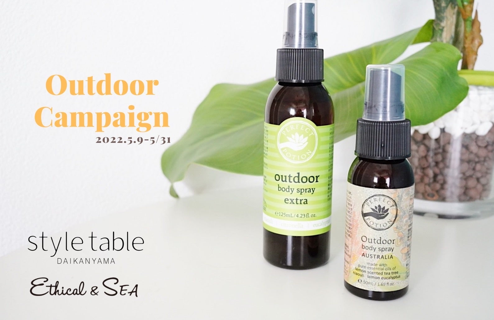 レジャー・イベントなどお出かけが多くなるこの季節。本キャンペーンでは今イチオシのエシカルなボディスプレーや日焼け止めなどをご紹介。アロマや自然の持つ力で、お出かけ時の紫外線や虫のトラブルから肌をやさしくガードします。