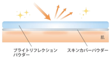 その上を覆うブライトリフレクションパウダー*3 が、自然光を乱反射させることで、ワントーン明るい肌へ*1と仕上げます。