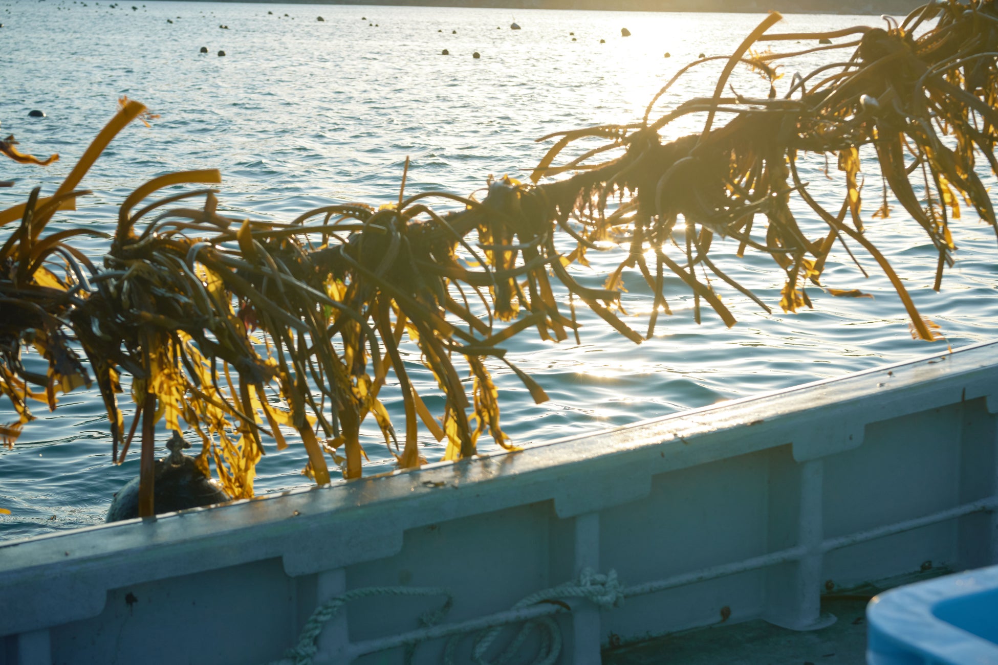 今回開発したシャンプー・コンディショナーのキーとなる原料は、岩手県陸前高田市産の廃棄されるワカメの茎をアップサイクルしたエキスです。ワカメの根本部分の茎は、収穫される際に海で刈り取って通常はそのまま廃棄されることが多く、海産物における未利用資源の一つとなっています。今回uraとファーメンステーションでは、ワカメのアルギン酸や天然のミネラルに着目し、髪表面のコンディショニングを目的とし、エキスとして配合しました。