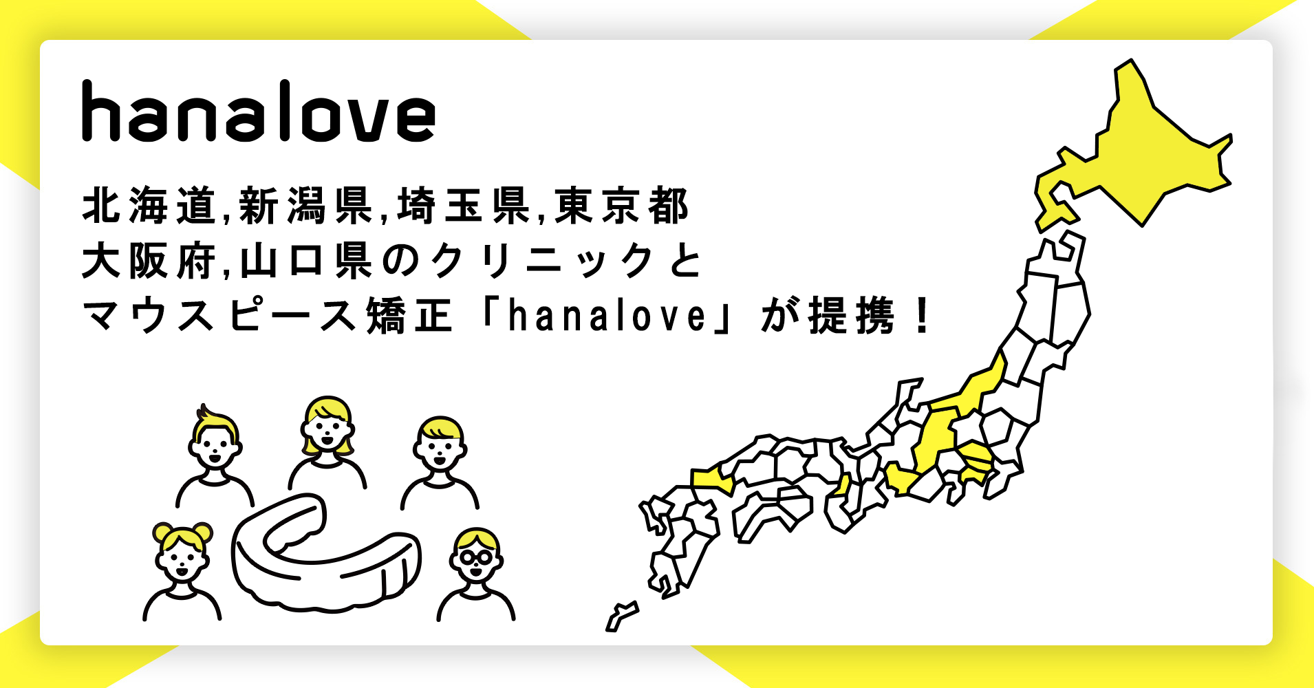 マウスピース矯正サービス「hanalove(はならぶ)」を開発、提供するDeltan株式会社(代表取締役 井上 佳洋)は、新たに北海道、新潟県、埼玉県、東京都、大阪府、山口県のクリニックと提携し、hanaloveによるマウスピース矯正の予約受付を開始いたします。
