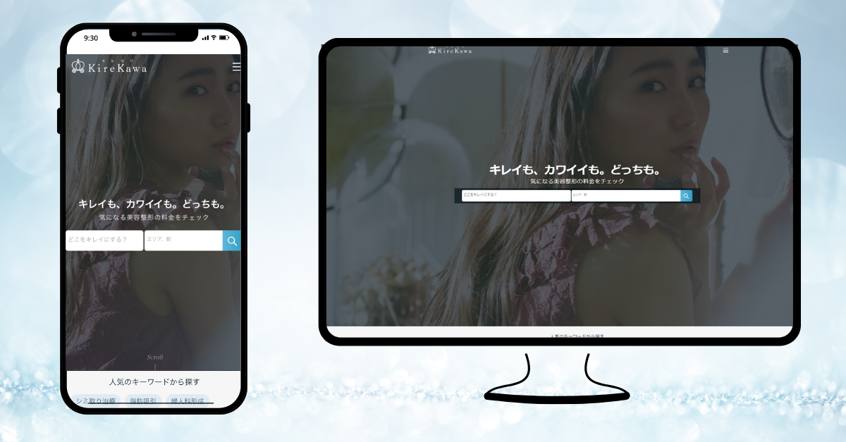 「キレカワ-kirekawa-」は、美容医療に興味をもっている女性が「気になる部位」や「お悩み」「エリア」で美容医療クリニックを施術名や地域などで簡単に検索することができるサービスです。