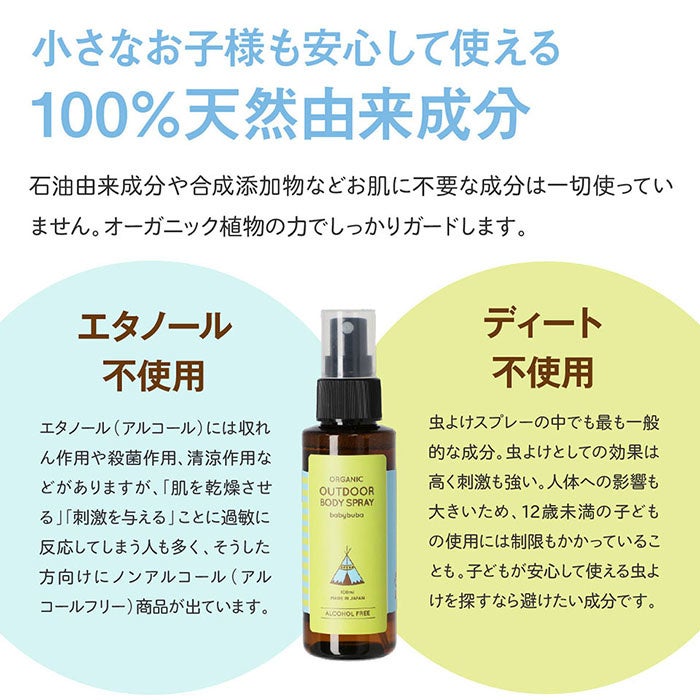 ベビーブーバは「安全で安心して使える赤ちゃんのためのスキンケアを」という想いから生まれた日本で企画から製造まで行うオーガニックベビースキンケア商品です。植物本来の恵みを十分に活かすために、自然のサイクルに沿う有機農法で育てられた世界各地の植物を丁寧に選び抜き、天然由来成分99%以上配合、肌触りの良さを保つために品質の高いコスメグレードの原料を採用しています。