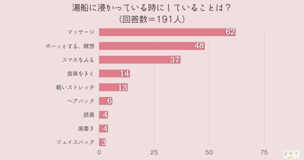 - 【総括】湯船に浸かっている時にしていること1位は『マッサージ』でした