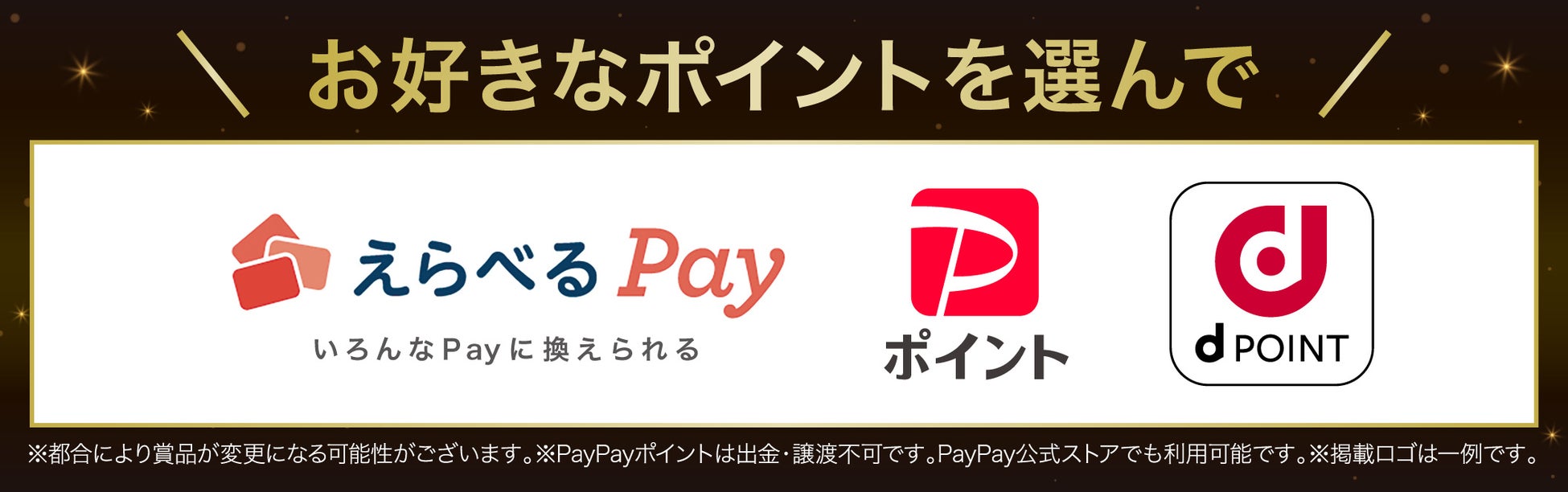 1点以上購入で500ポイント、3点以上購入で2,000ポイントが、下記お好きなキャッシュレスサービスよりゲットできます。