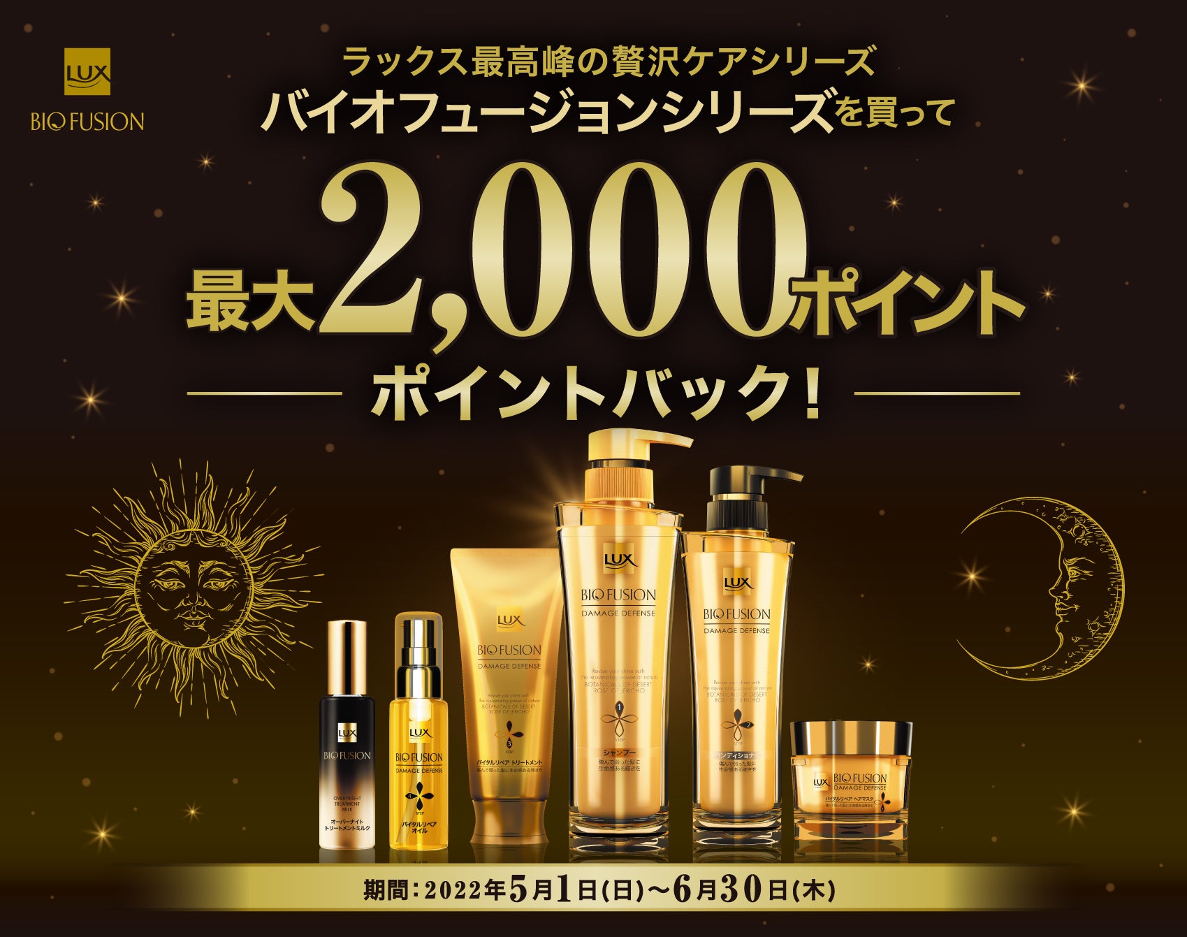 ユニリーバ・ジャパン・カスタマーマーケティング株式会社(本社:東京都目黒区、代表取締役 社長:サンジェイ・サチュデヴァ)は、トータルビューティーケアブランド「LUX(ラックス)」のプレミアムライン「ラックス バイオフュージョン」において、対象製品購入でポイントバックとなるキャンペーンを、5月1日(日)より期間限定で開催します。