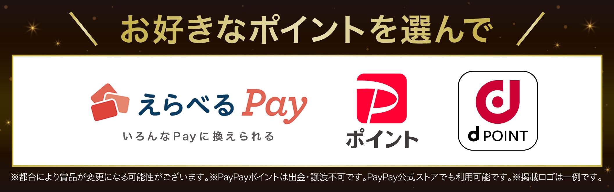 1点以上購入で500ポイント、3点以上購入で2,000ポイントが、下記お好きなキャッシュレスサービスよりゲットできます。