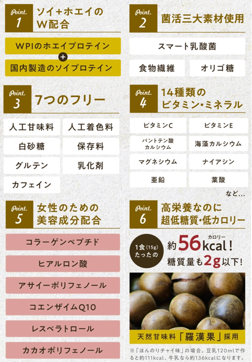 その最大の特徴は、1杯で美容・栄養成分ほぼ1日分の推奨摂取量を充足するオールインワン美容食であるという点にあります。