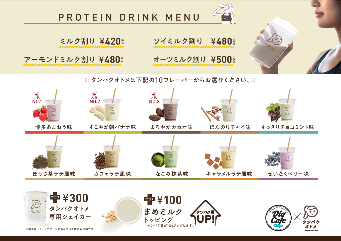 タンパクオトメを使用したプロテインドリンクを提供します。