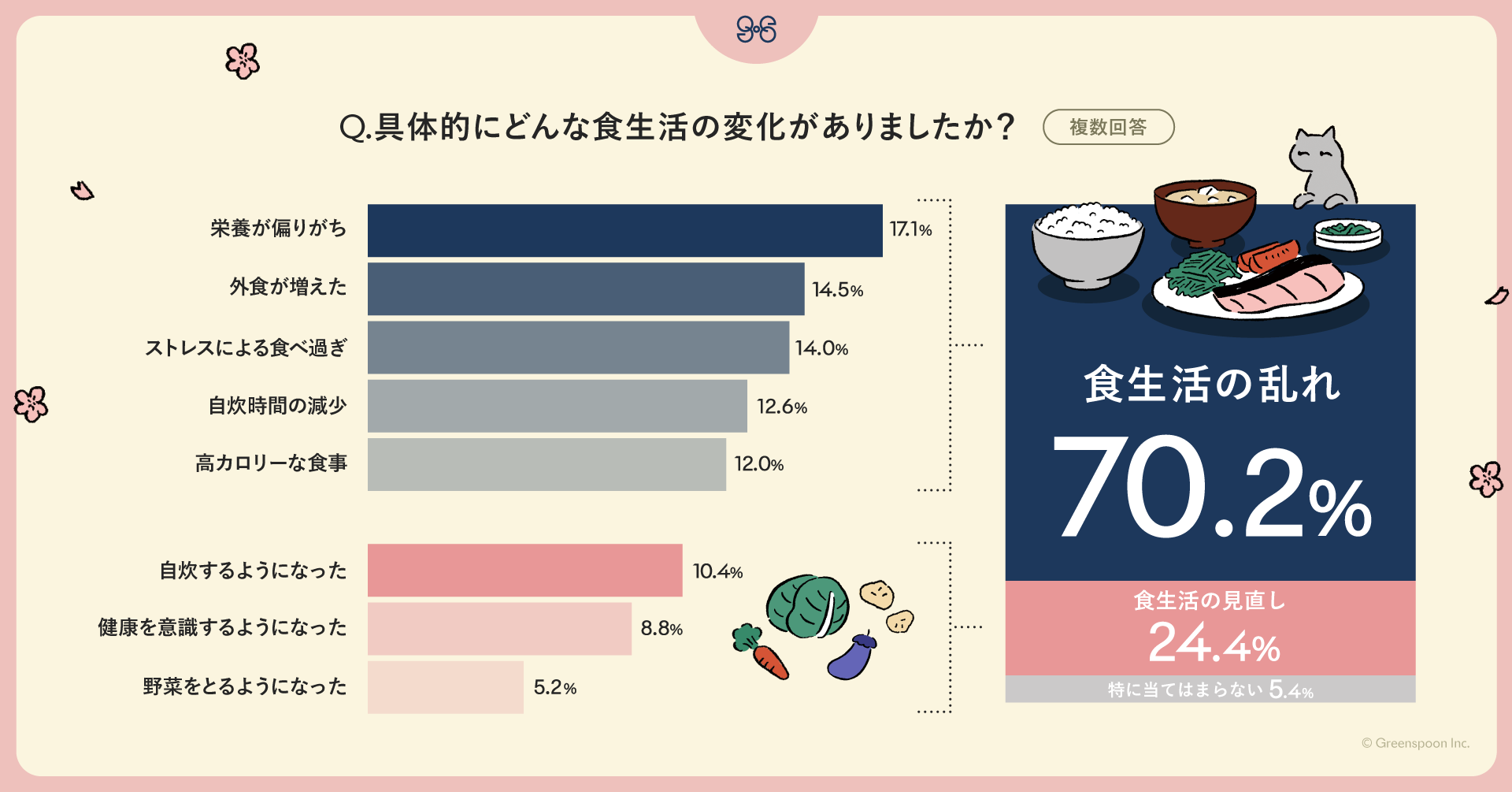 4月からの環境の変化にともない、食生活がどのように変わったかをアンケートしたところ