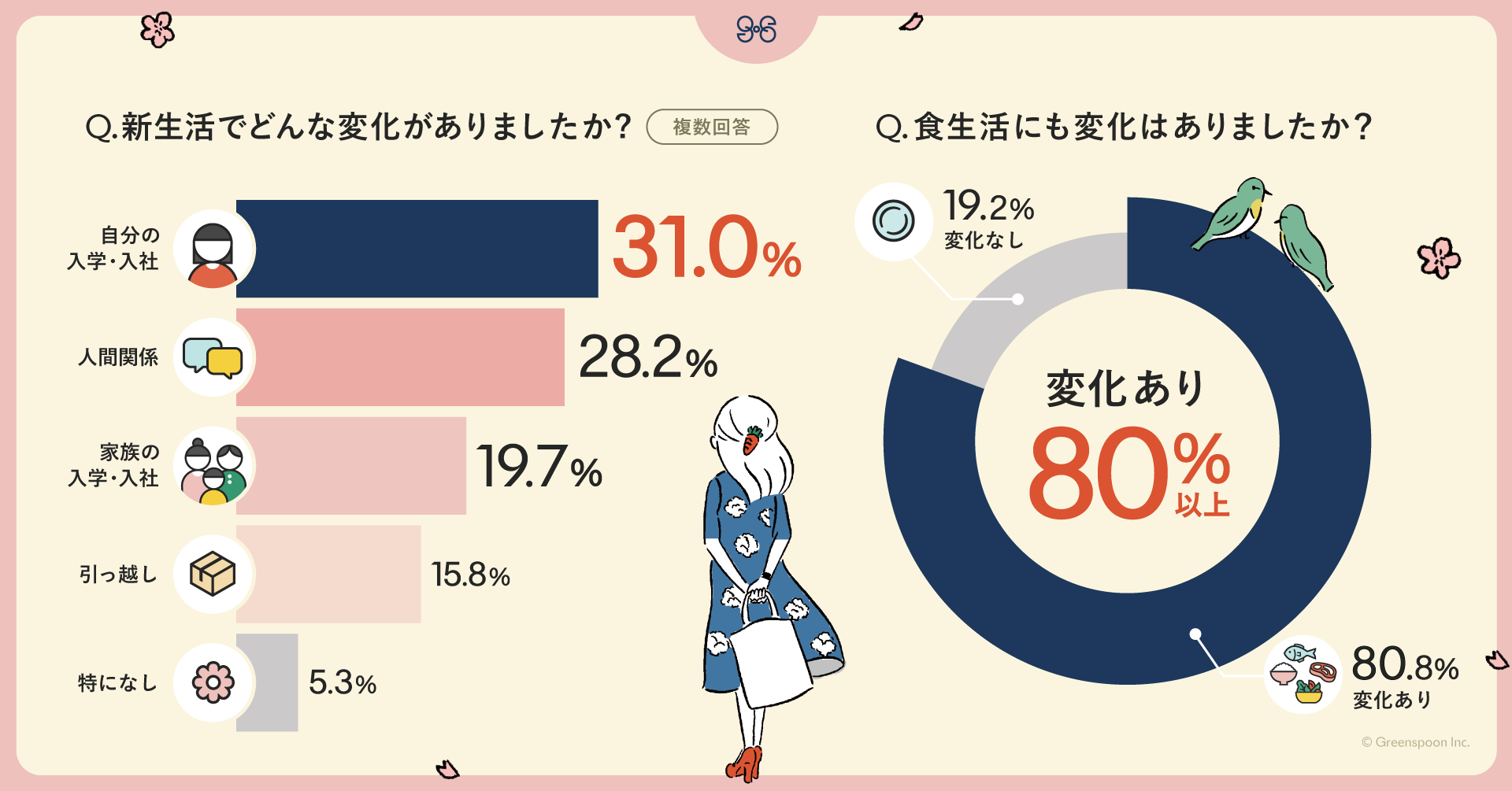 4月からの新生活によって、80.8%のユーザーが「食生活も変化した経験がある」と回答しました。