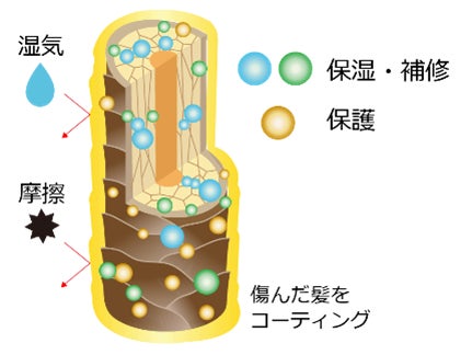 様々なダメージを受けて空洞化してしまった髪の内側を保湿・補修成分で満たし、コーティング成分で傷んだ髪表面を保護します。