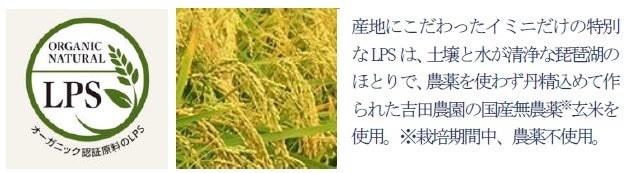 保湿成分パントエア菌LPS※2 を配合。肌力を高めるために働くと同時に、乾燥による小ジワを目立たなくし※3、ハリ・弾力のある若々しい印象の肌に導きます。イミニ特別仕様のパントエア菌LPS 原料は、エコサートグリーンライフ社より、オーガニックコスメ認証である「COSMOS 認証(原料登録)」の認証を受けています。