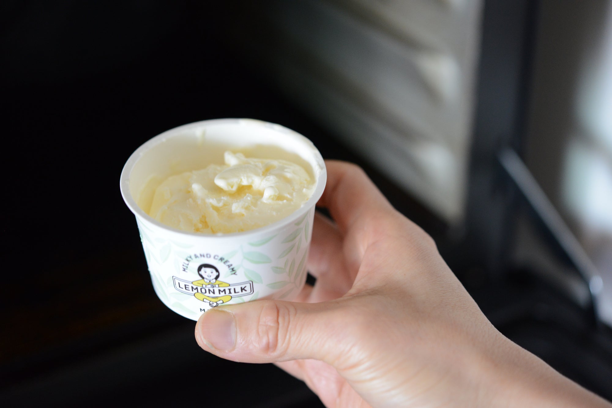 ◎ 瀬戸内海の豊島産レモンの果汁が入った「レモンミルク」