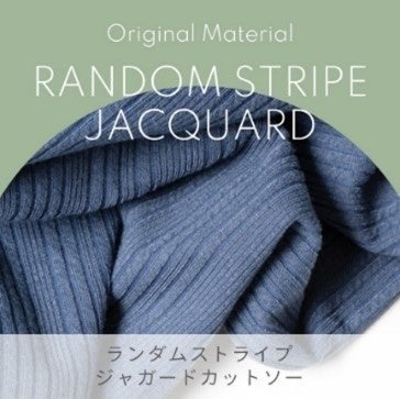 一見、布帛にも見えるハリのある独特な表面感と、ジャガード織りによる立体感のあるランダムストライプ素材。