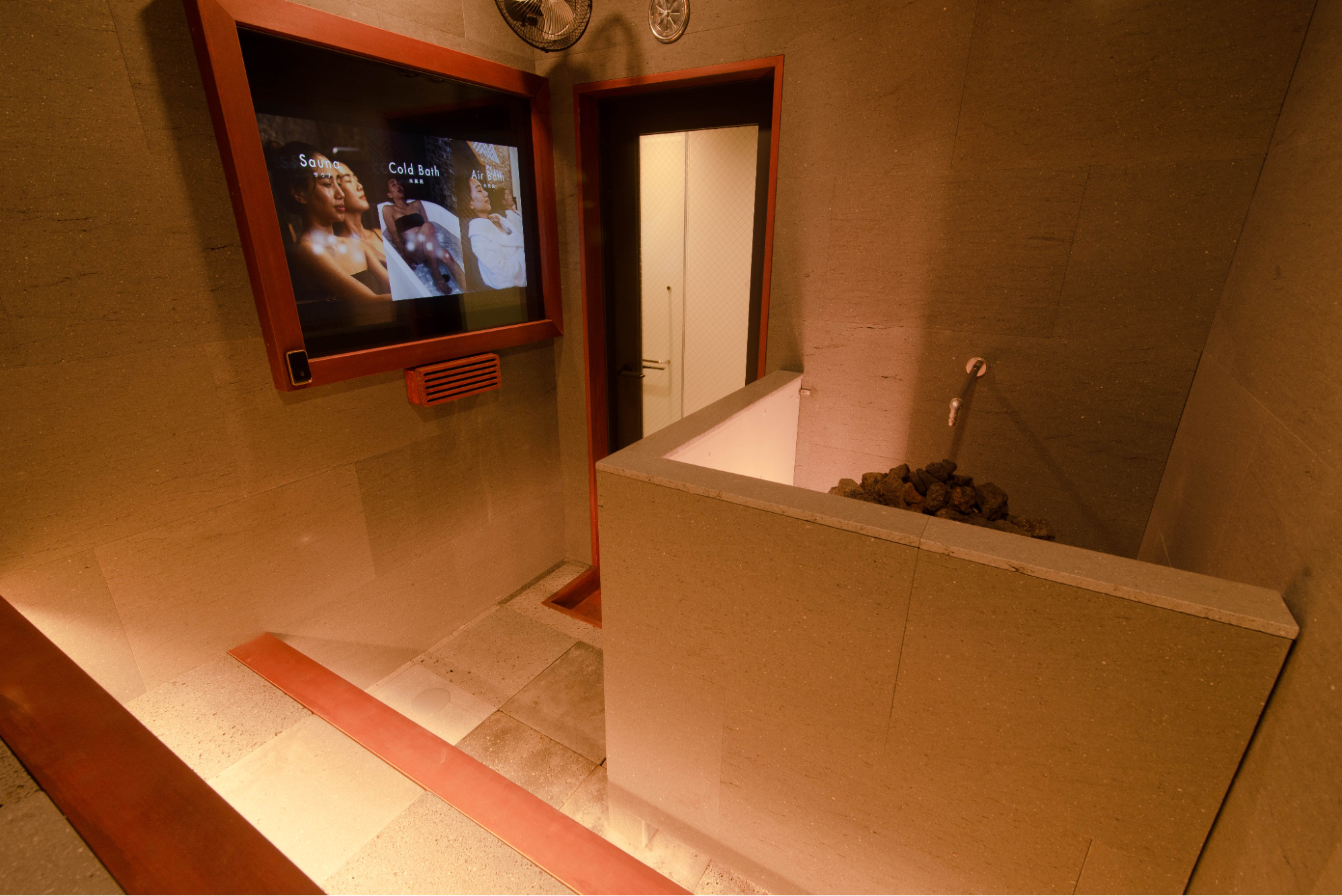 LOCA水風呂は富士山溶岩によって作られた水風呂に独自の濾過システムを使用したミネラル鉱石水をチラー循環しており、極上の“ととのい”をご提供いたします。