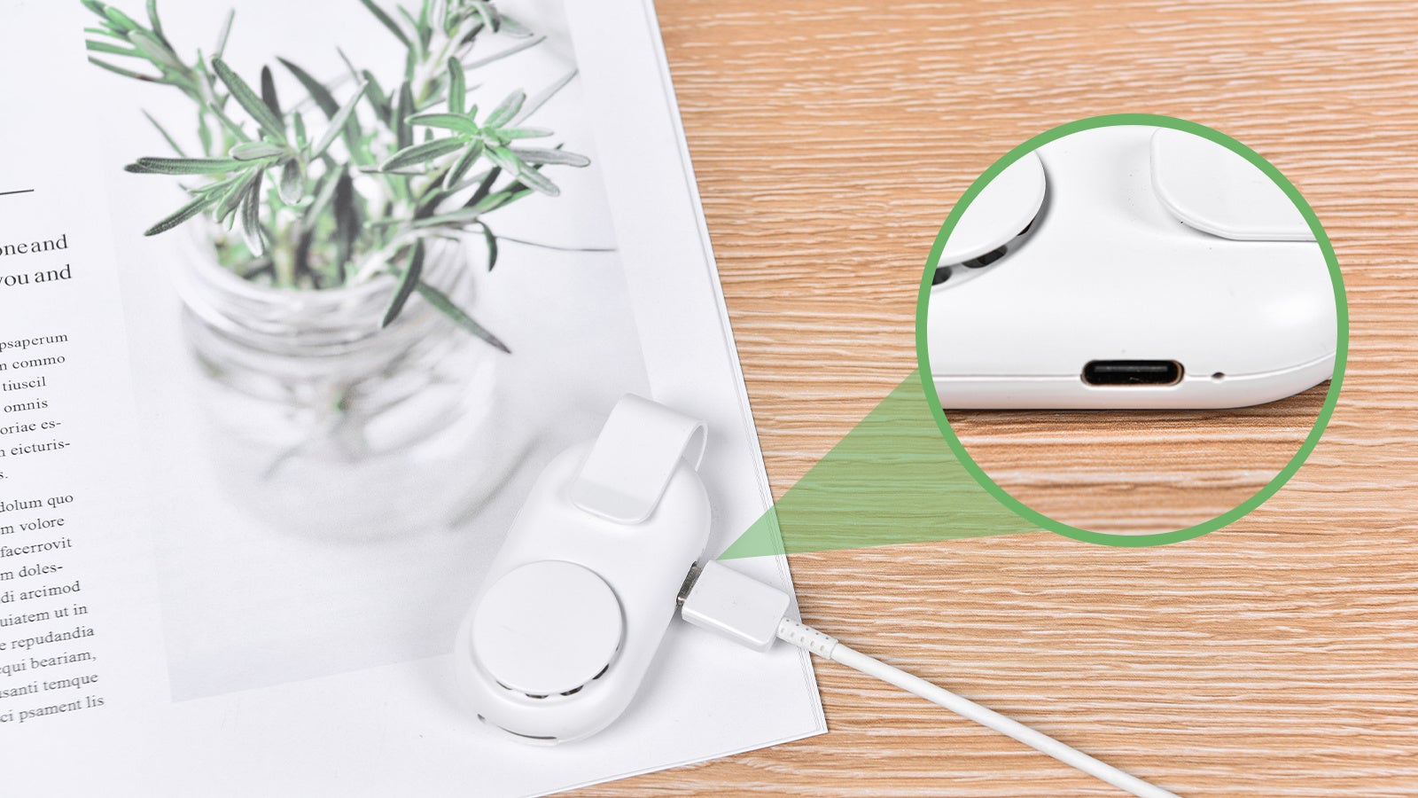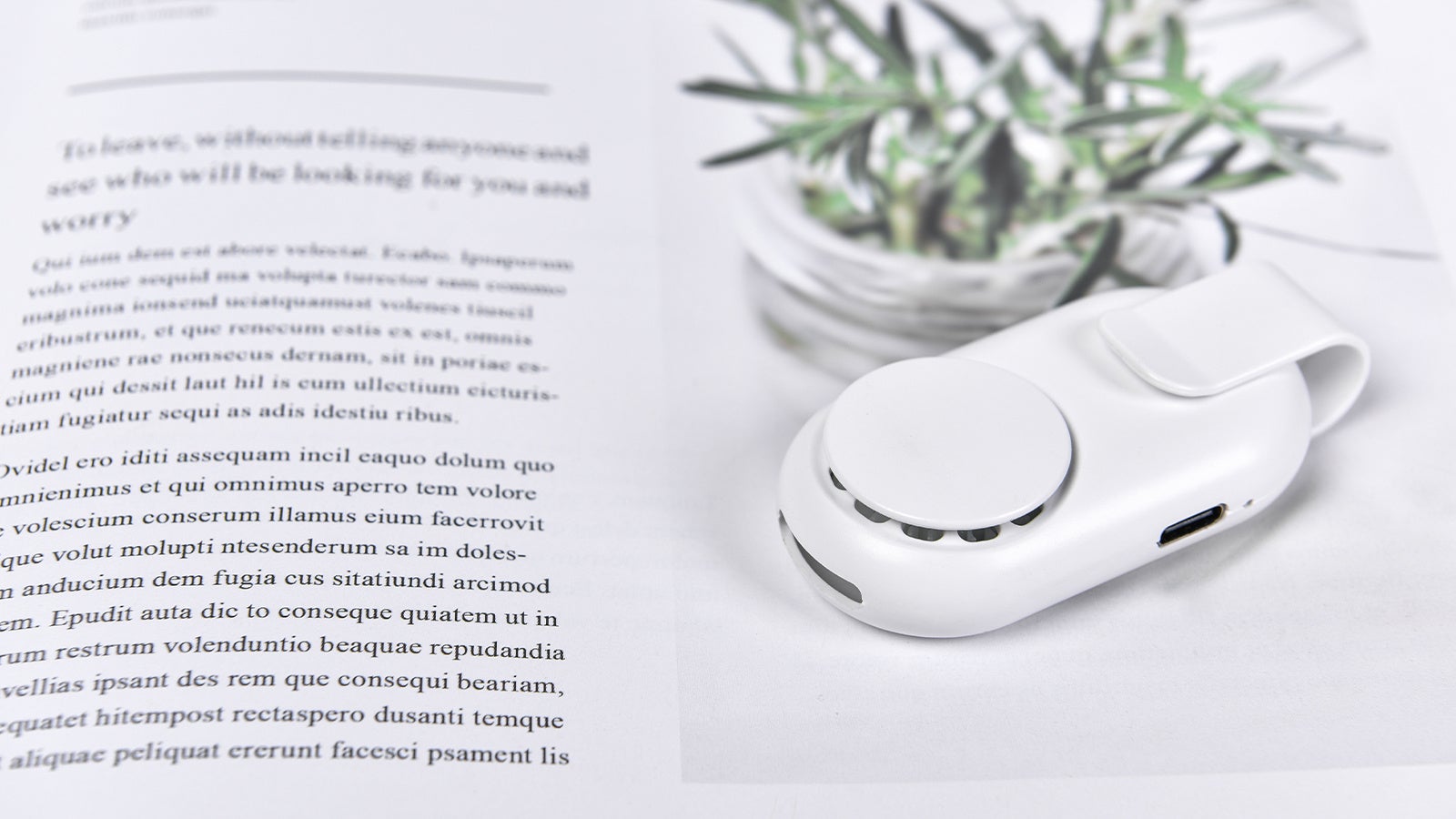 コンパクトサイズで重さが気にならず、携帯にも最適。AVWOOマスクエアーファンはサイズ約7㎝×3㎝、厚さは2㎝未満、重さは約24gと、コンパクトで軽量。使用しない時はポケットやバッグに気軽に収納でき、携帯に最適、着脱も楽々。